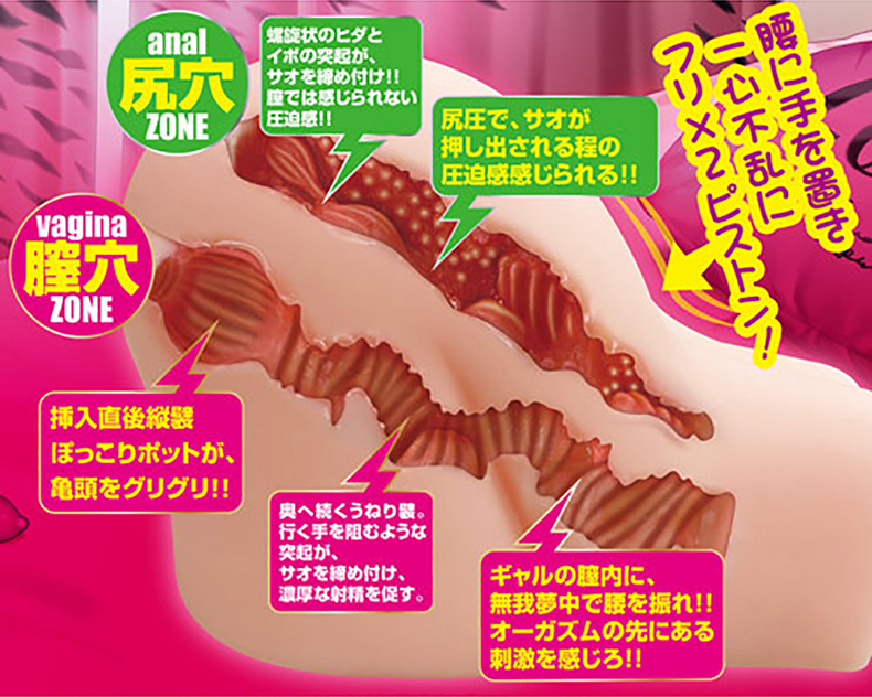 插入後直接就是縱向區域刮弄你的龜頭,中段的螺旋絞肉區纏繞著你的根棒,後段的小突起與螺旋皺褶讓你爽到忘我的動腰