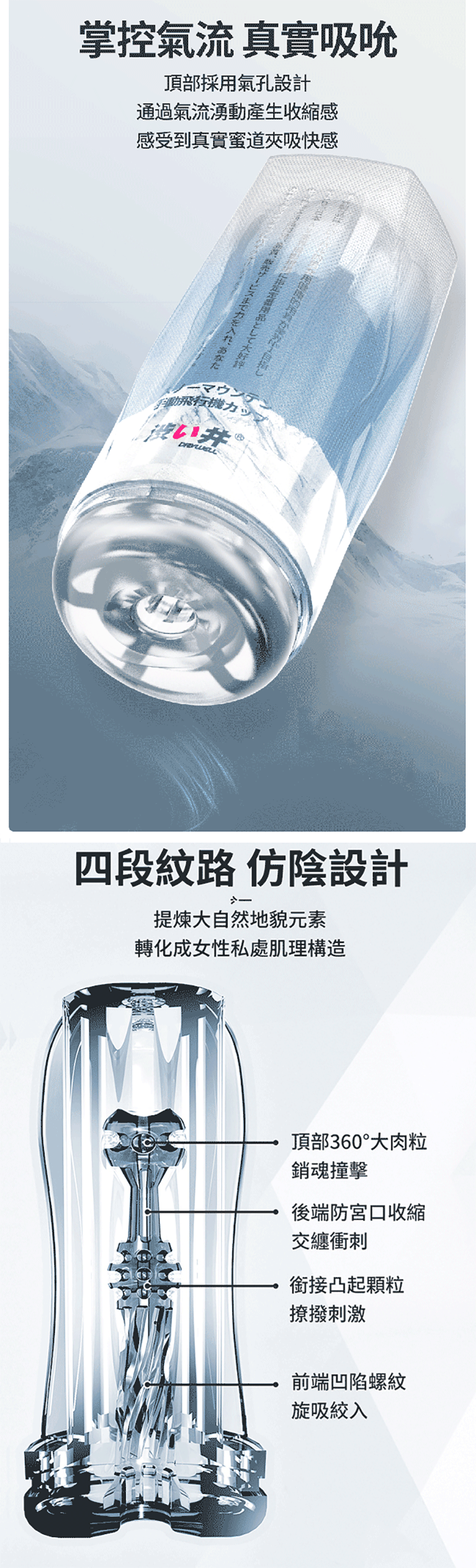 邊鍛鍊,邊享受!極致緊致後庭通道、飽滿肉質觸感、全面貼合內部紋理、真空氣流內腔設計猶如攀爬雪山般一步步提升到感官的頂峰。