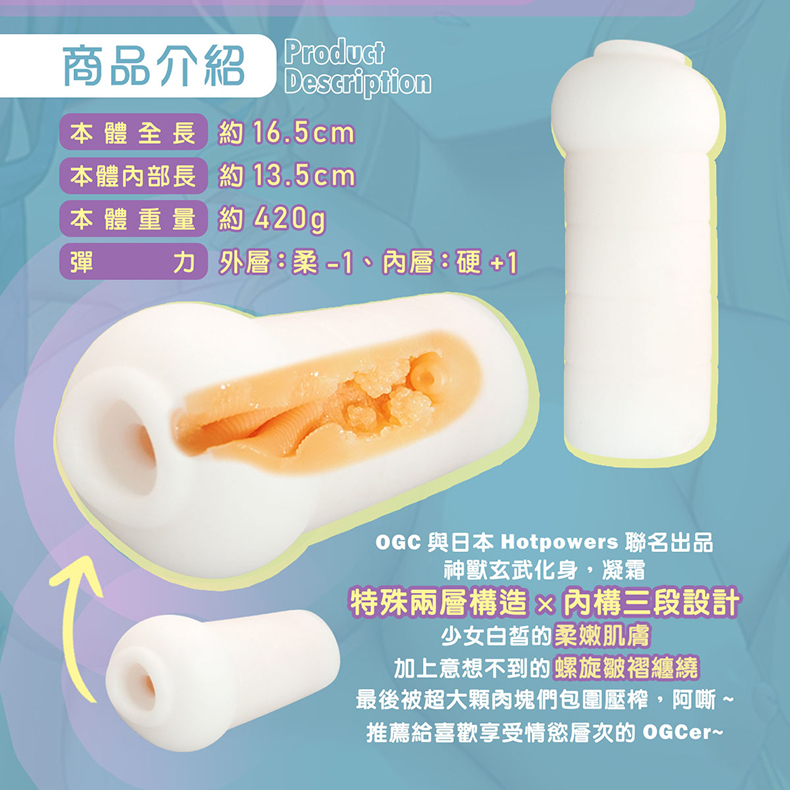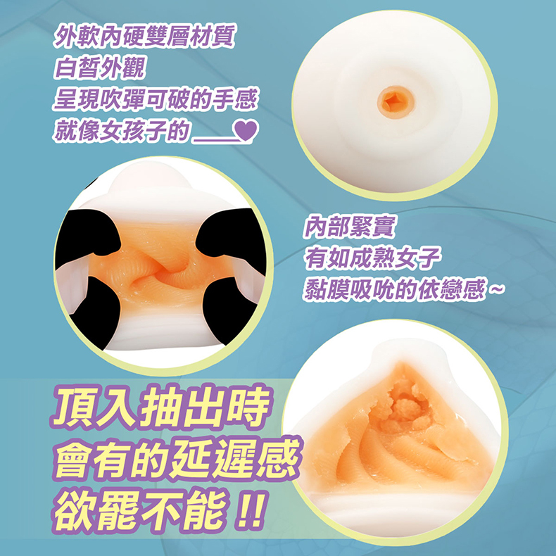 特殊兩層構造×內構三段設計少女白皙的柔嫩肌膚,加上意想不到的螺旋皺褶纏繞最後被超大顆塊們包圍壓榨,阿嘶,推薦給喜歡享受情慾層次的OGCer~