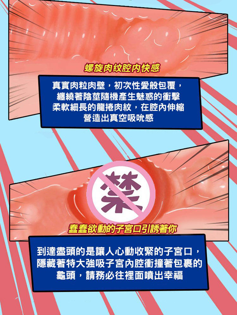 自慰套深處有子宮口設計,插入前將空氣擠出有真空的效果