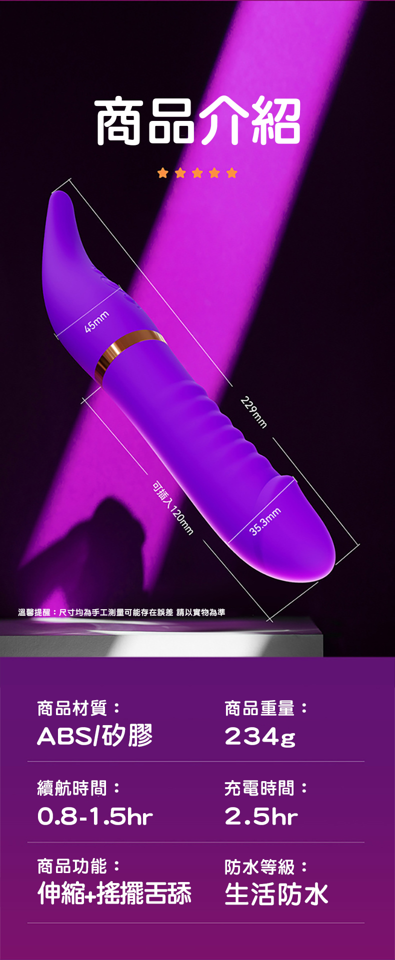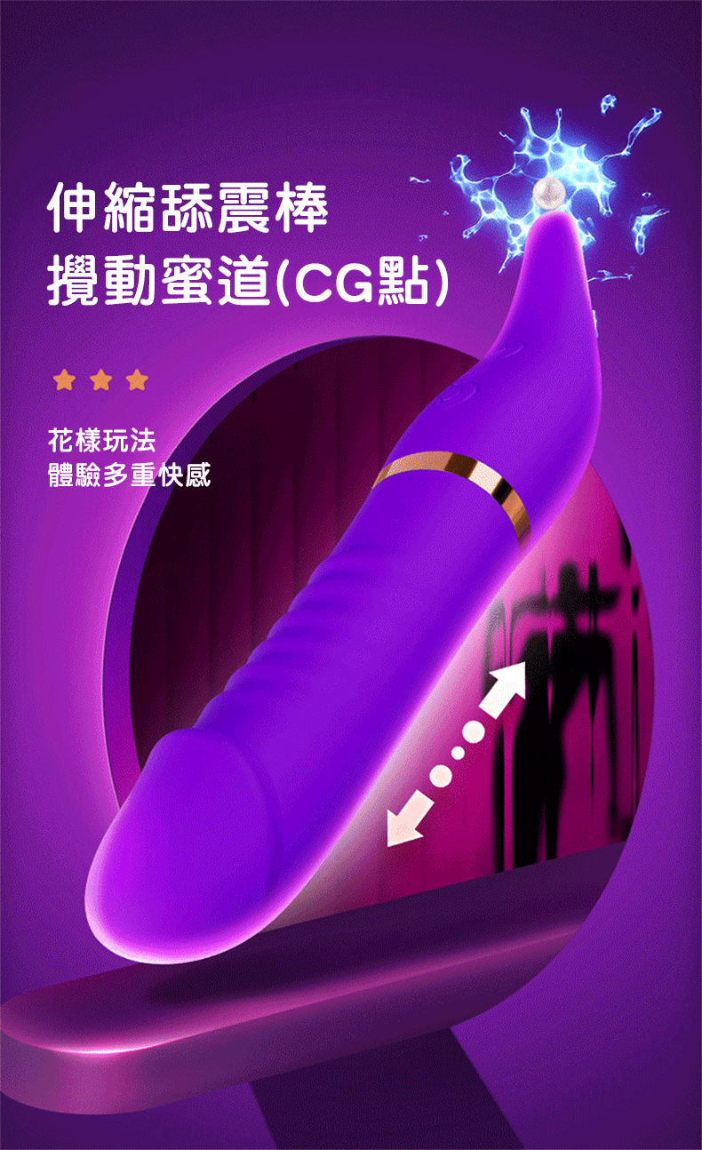 柔軟親膚材質,多重刺激,CG點摳動+伸縮+震動三重刺激