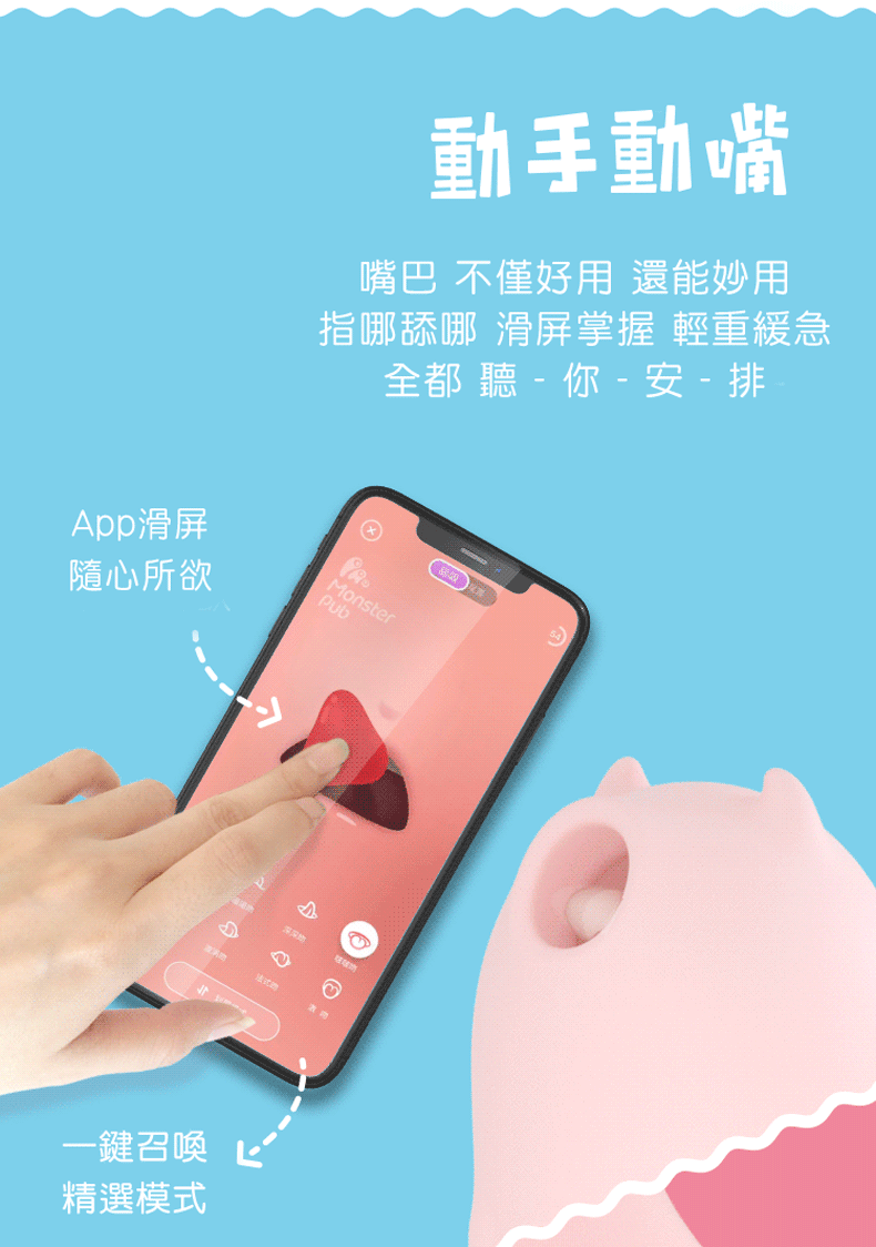 有了魔吻,你不需要買一個吸吮器、一個震動跳蛋,因為小怪獸魔吻全都有