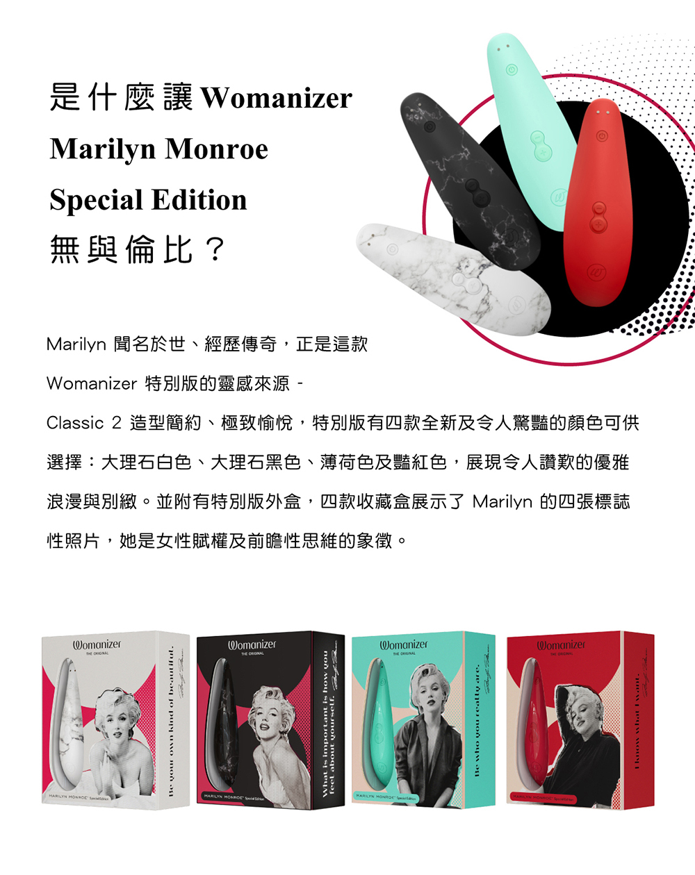 Womanizer-Classic 2 吸吮愉悅器 瑪麗蓮夢露特別版(大理石白)
