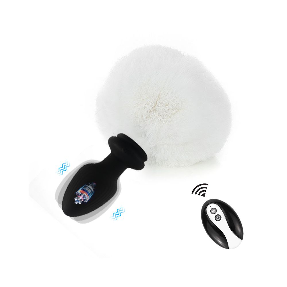 Sexbay-毛毛球 搖控震動肛塞(白)