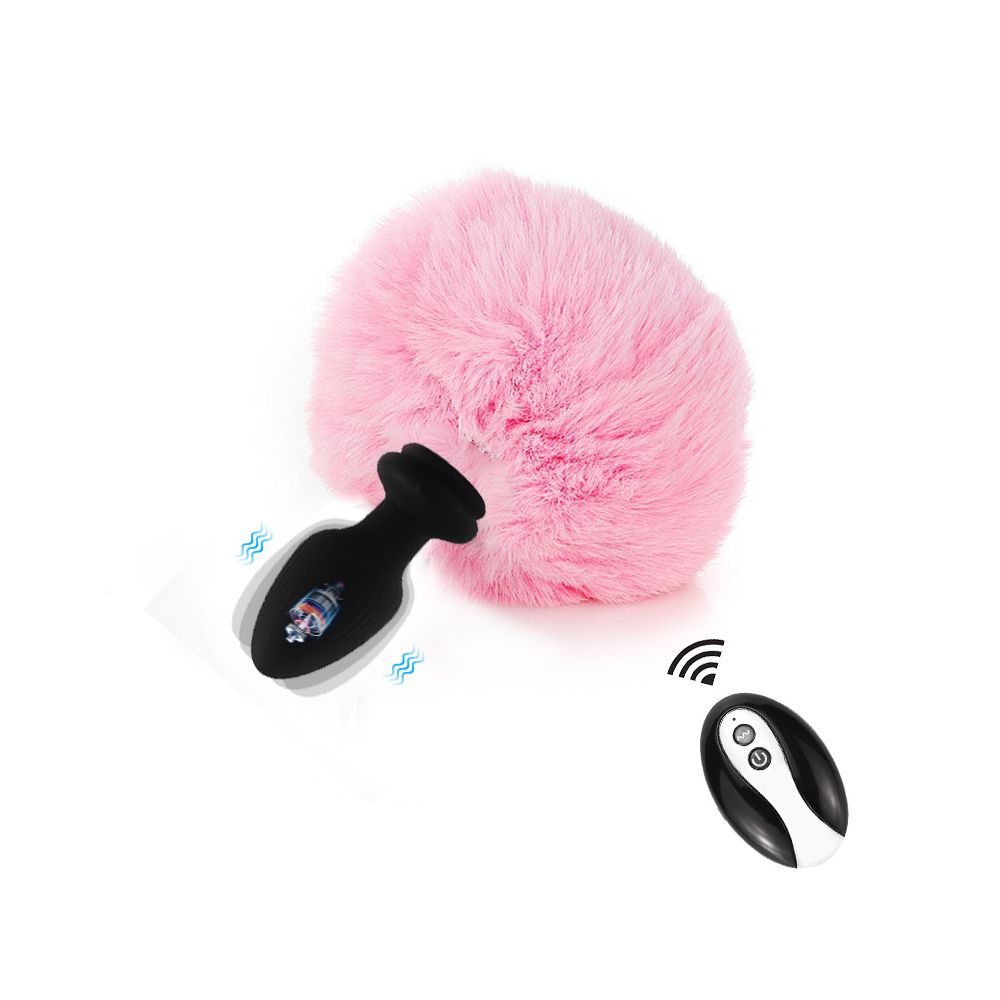 • Sexbay-毛毛球 搖控震動肛塞(粉)
