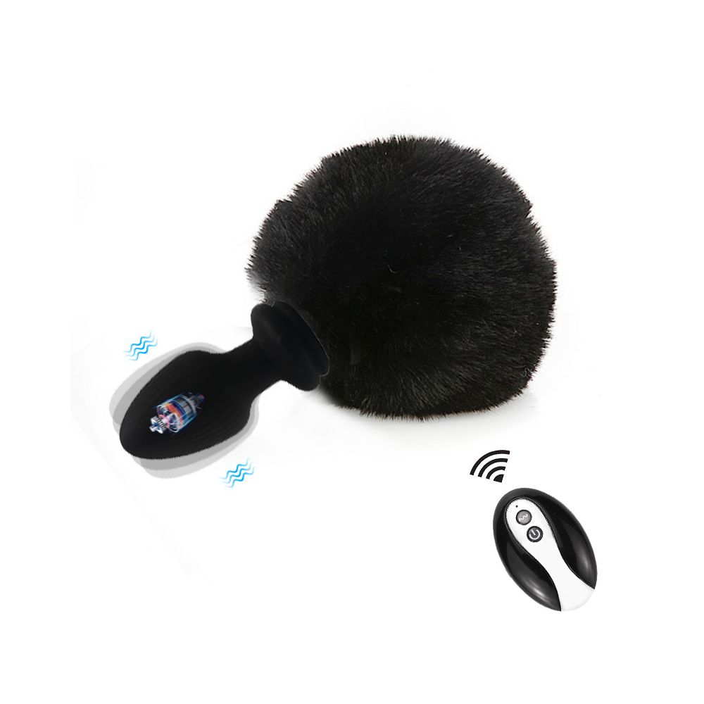 Sexbay-毛毛球 搖控震動肛塞(黑)