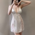 霂戀-法式風情緞面拼蕾絲前開扣睡衣(白)