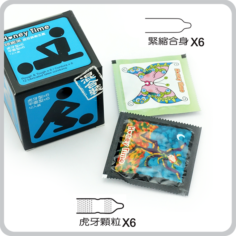 【虎牙顆粒+平面緊縮型|混合裝保險套 12入/盒】
