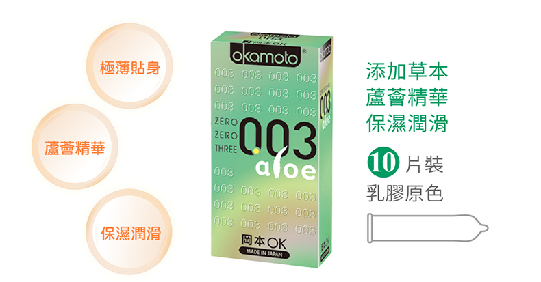 • 岡本-003蘆薈極薄極潤保險套-10入