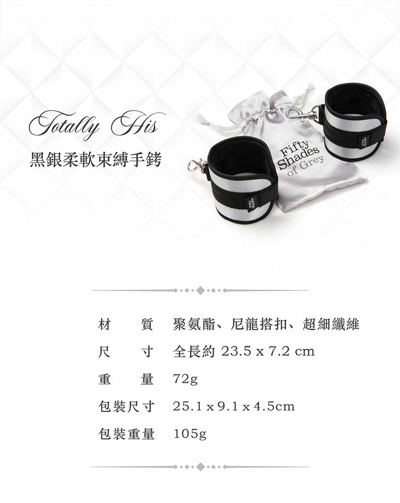 • 格雷的五十道陰影-Totally His 黑銀柔軟束縛手銬