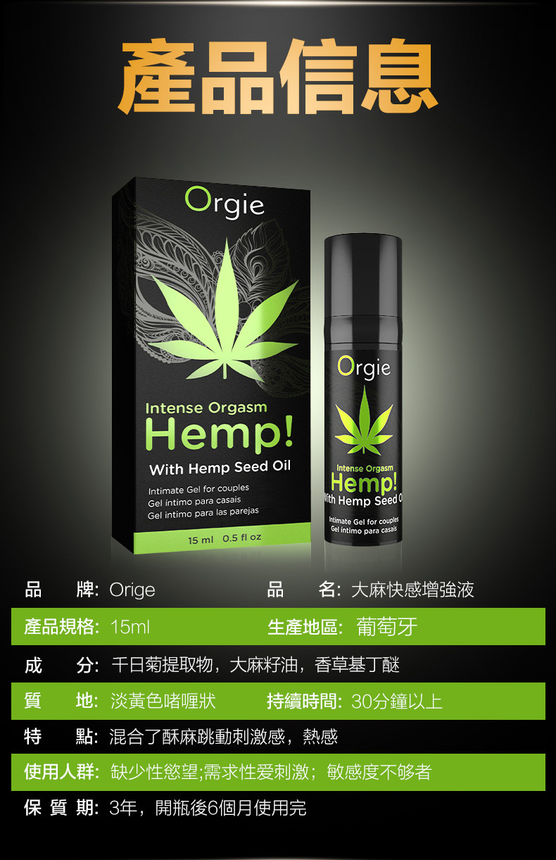 • Orgie-Hemp! Intesnse Orgasm 大麻籽油刺激凝膠 15m