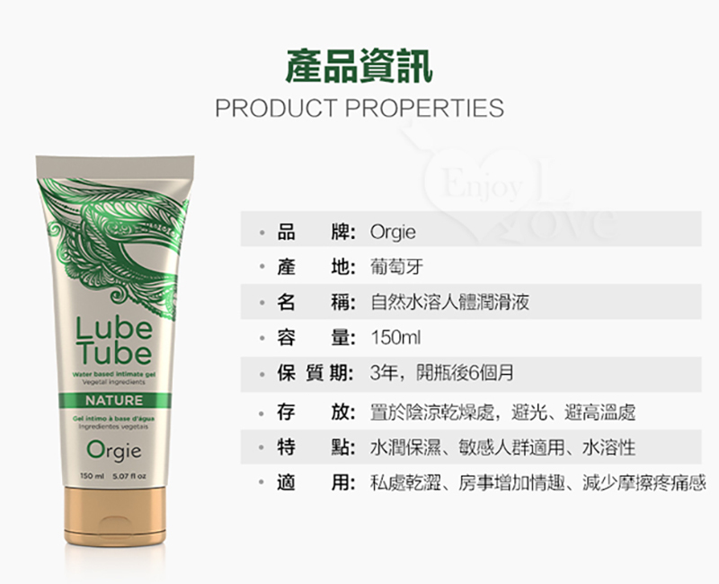 Orgie-Lube Tube nature 天然植萃水性潤滑液 150ml