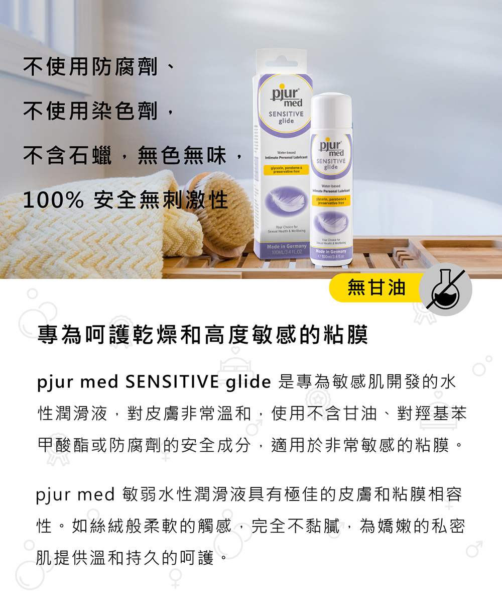• pjur-med SENSITIVE glide 專業抗敏水性潤滑液100ml