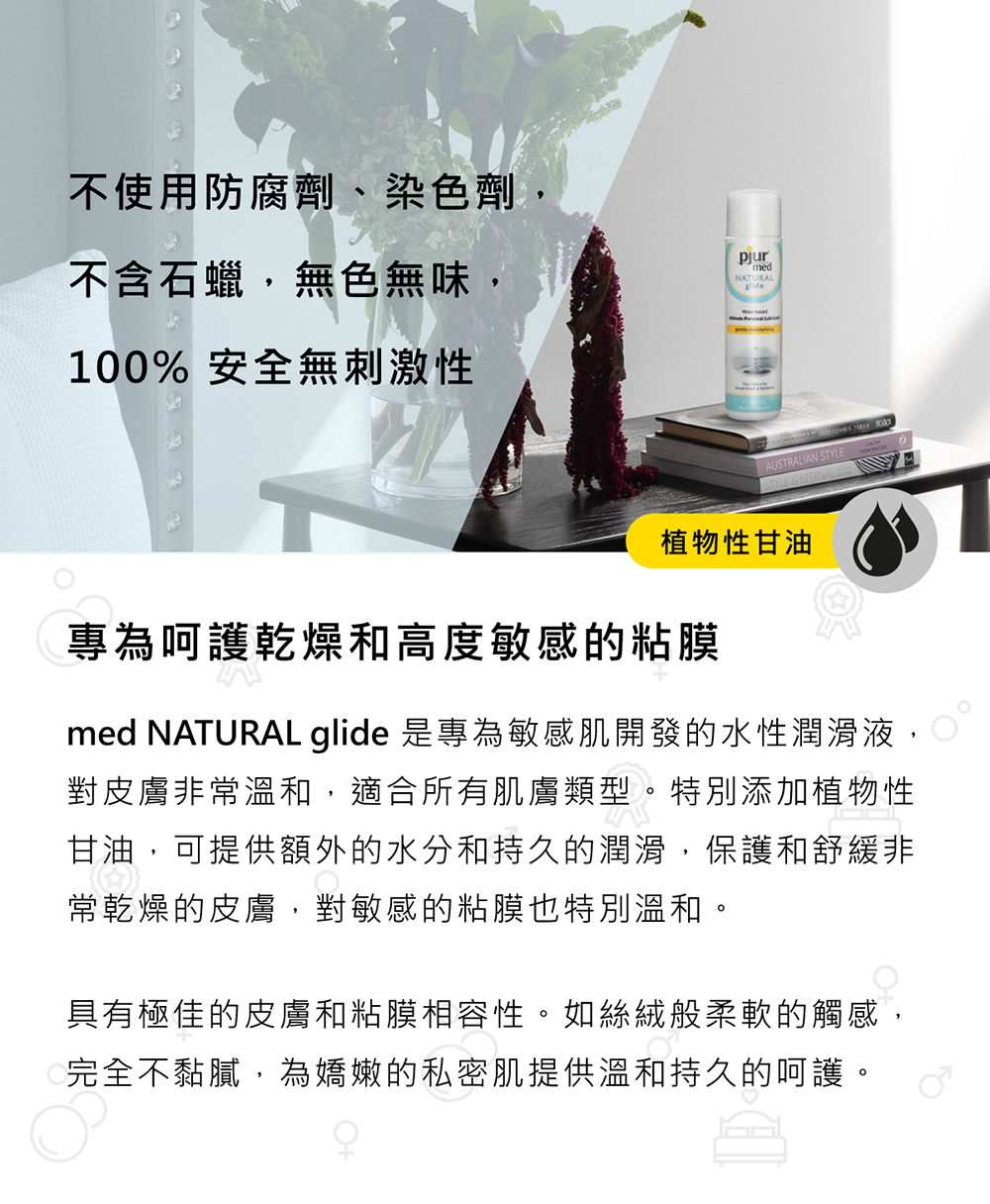 【med NATURAL glide 專業抗敏植萃保濕水性潤滑液】
