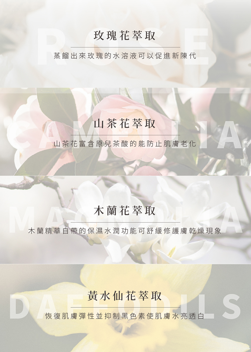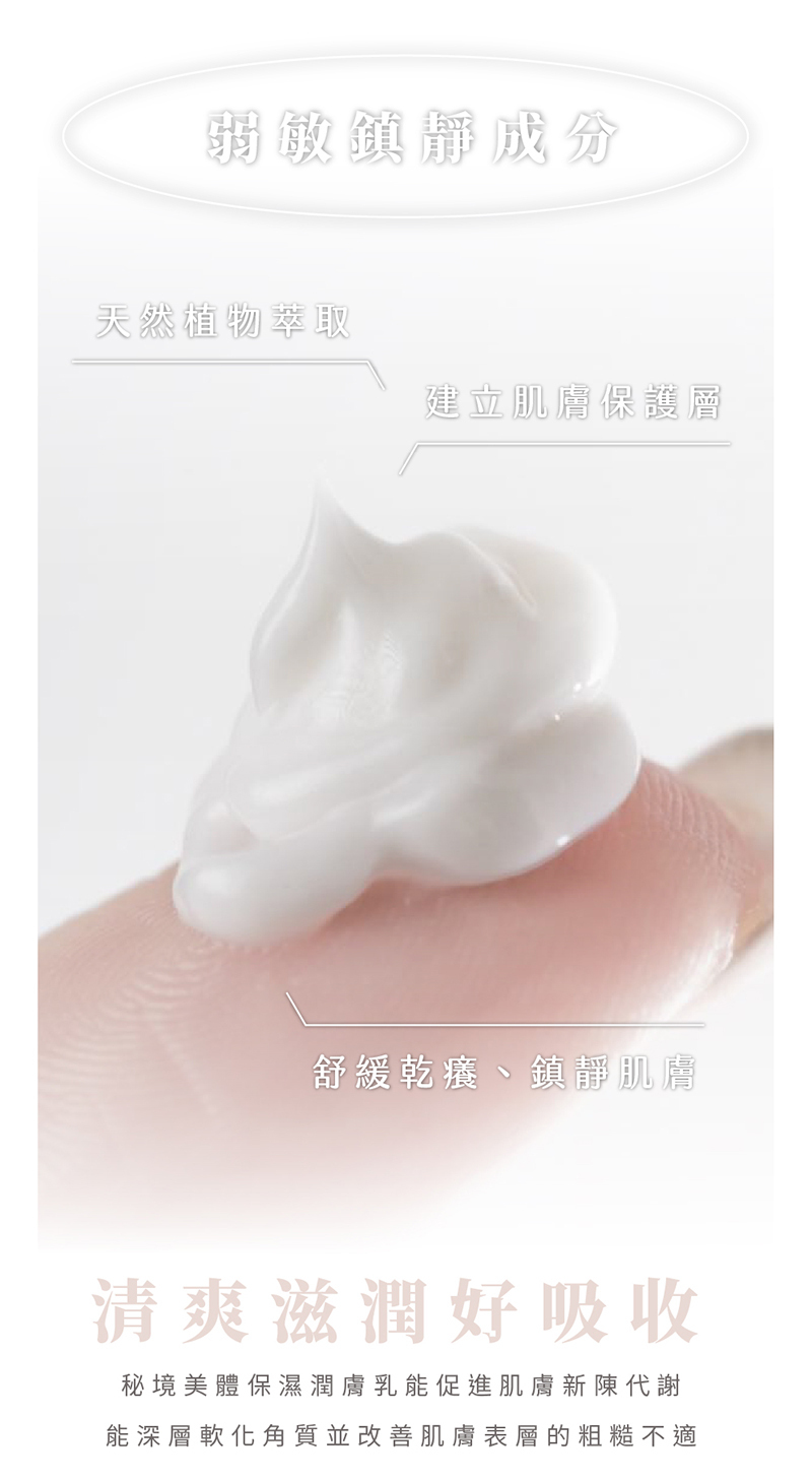 嚴選珍貴植物萃取,舒緩皮膚乾燥,使肌膚更加柔嫩