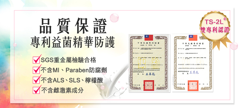 主要成分:TS-2L益菌精華、維生素C磷酸鎂鹽(MAP)、山花精(Gigawhite)、蘆薈萃取、茶樹精油、玫瑰草精油
