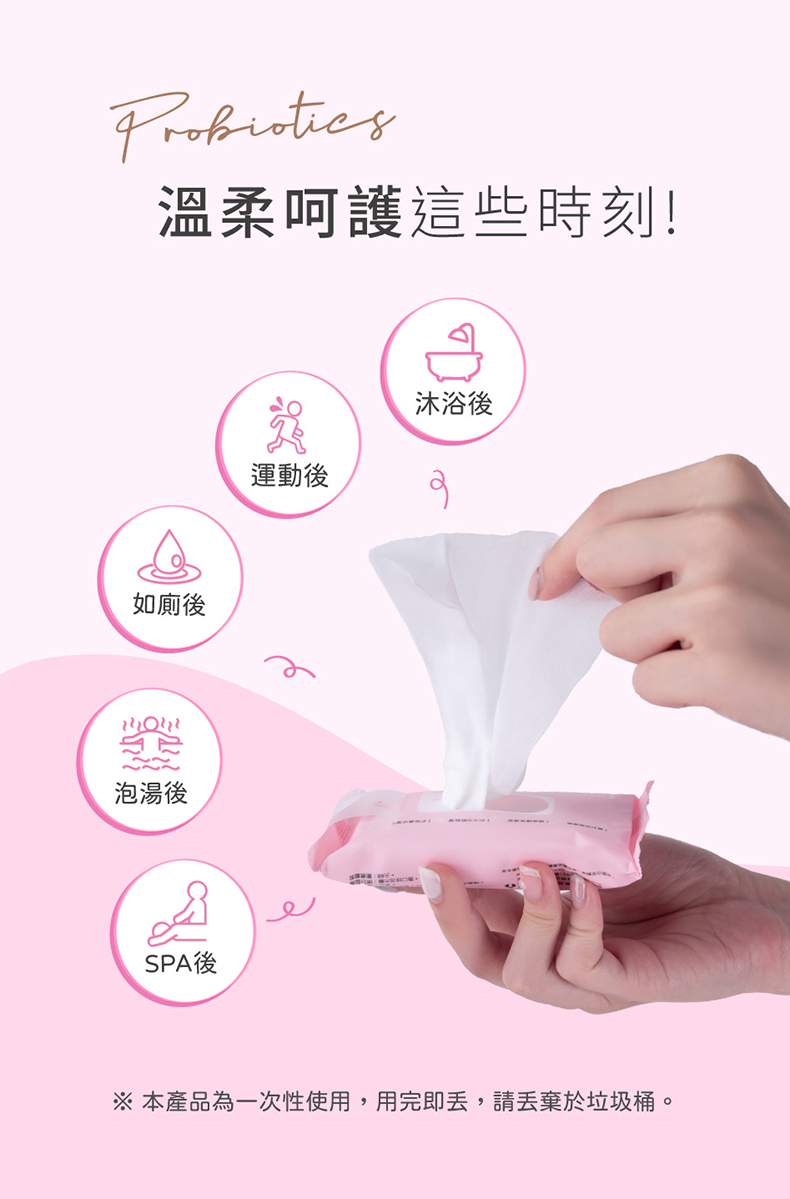 使用方法:抽取紙巾,擦拭於私密肌膚,使用後立即丟棄於垃圾桶