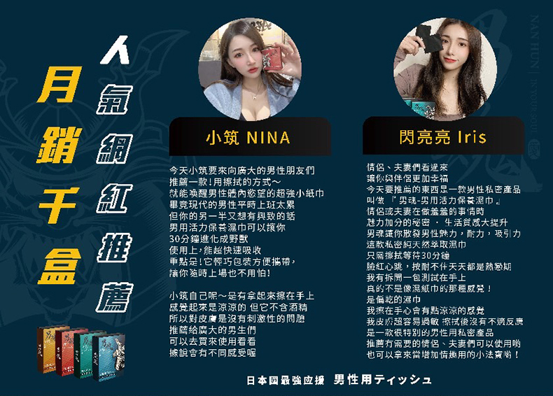 款式:男用活力保養濕巾 火用法:一次只需用1片即可,適合隨身攜帶,隨時磨槍上陣。